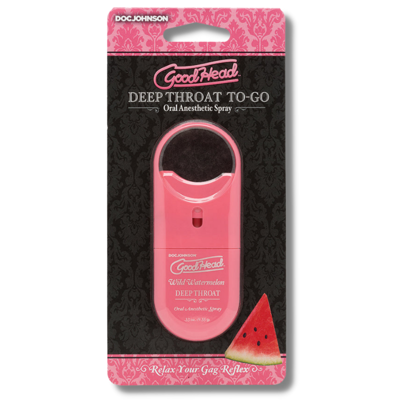 GoodHead Deep Throat Spray To-Go offers a delicious mild numbing agent with a simple spray. No gag reflex, no discomfort, just a mind-blowing deep throat experience. Free of Parabens and Sugar. This delectable desensitizing formula turns good head into great head! Made in the USA.